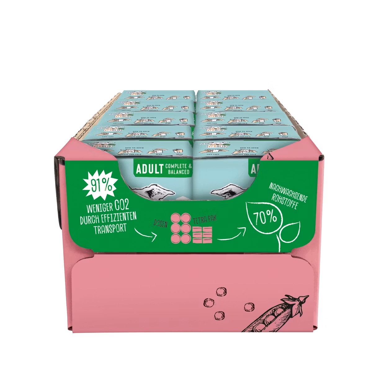 VEGDOG Vuxen Ärtor & Havregryn i Tetra Pak är ett komplett livsmedel för alla vuxna hundar från 12 månader (beroende på ras och storlek) och erbjuder en hälsosam förändring av utfodringsschemat. Den innehåller alternativa proteinkällor som gör det lämpligt för känsliga hundar och som en uteslutningsdiet. En formel som helt uppfyller och är perfekt anpassad till din hunds behov.
