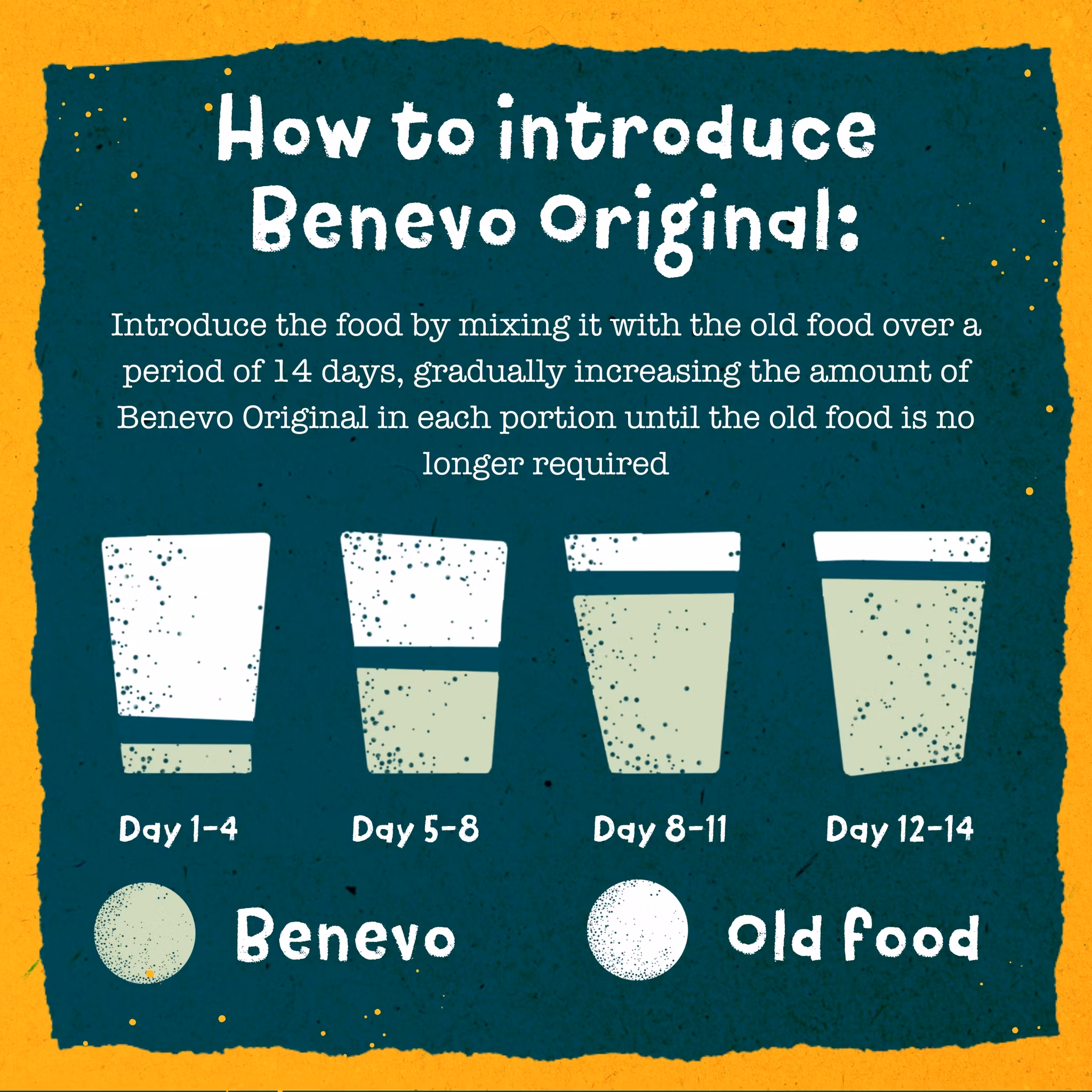 När du introducerar din hund för Benevo Original, gör det gradvis under en period av 7 dagar.