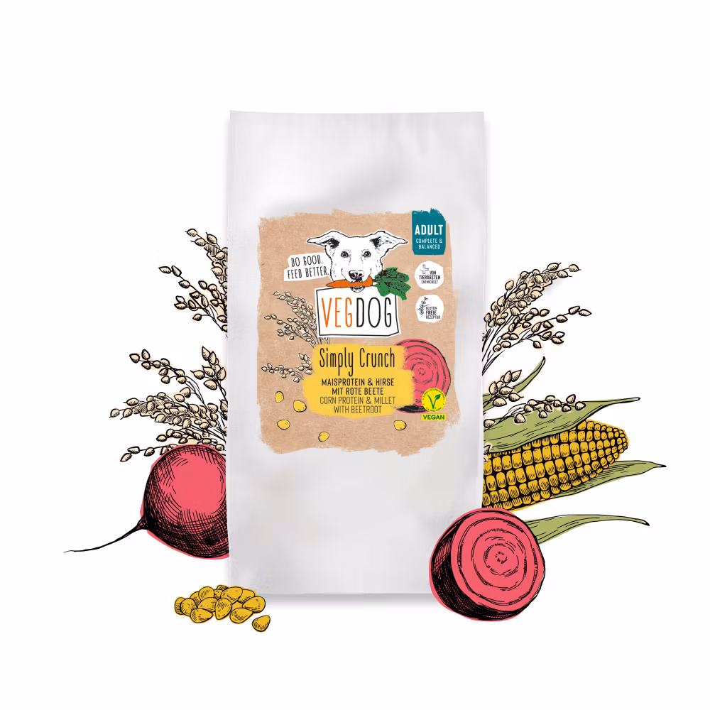 VEGDOG SIMPLY CRUNCH är ett glutenfritt, lättsmält foder som lämpar sig för hundar med allergier och känsliga magar.