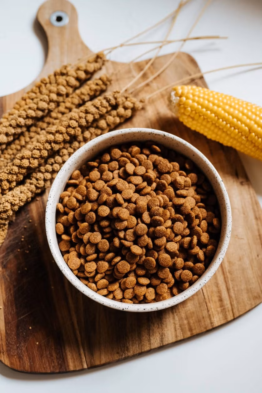 Majs innehåller omega-6-fettsyran linolsyra, som kan bidra till en sund hud och päls. Hirs är en glutenfri källa till kolhydrater och alla de andra ingredienser som potatisprotein, linfrö, mineraler och öljäst bidrar till din hunds vitalitet.